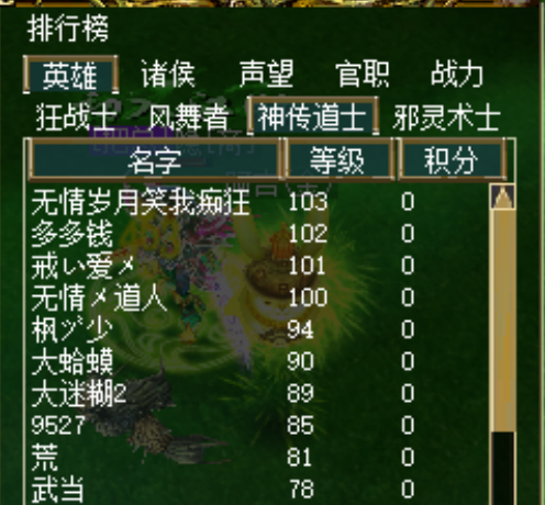 活动内容:活动期间,各职业等级排行榜前十名玩家,均可获得丰厚点数奖励。